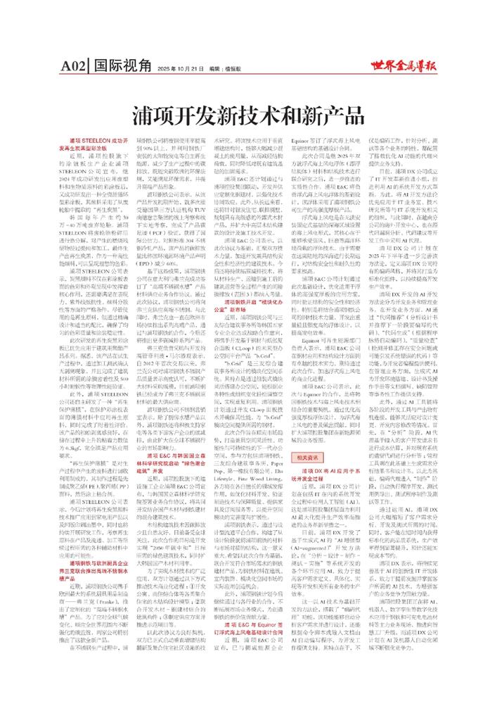 浦项开发新技术和新产品