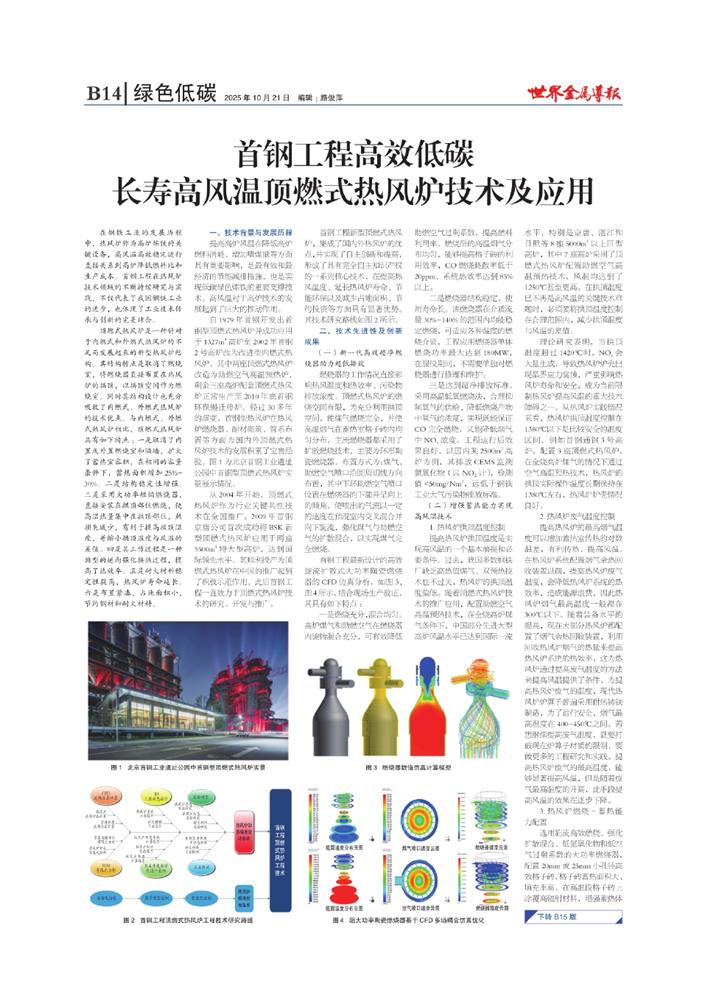 首钢工程高效低碳长寿高风温顶燃式热风炉技术及应用