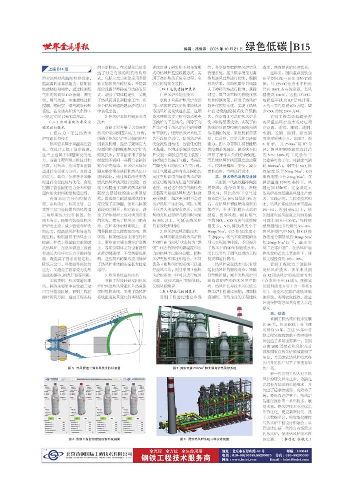首钢工程高效低碳长寿高风温顶燃式热风炉技术及应用